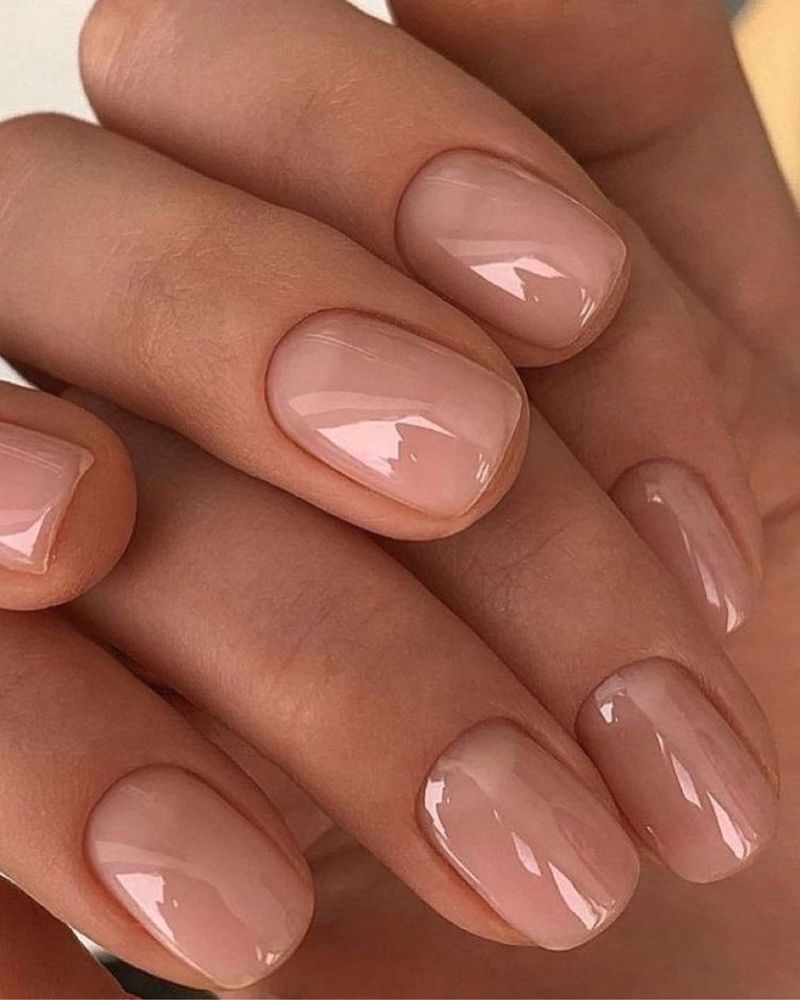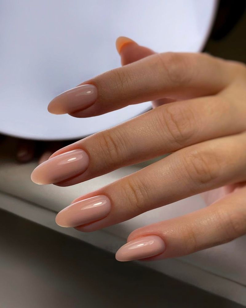 Pink-beige nails with an ultra-smooth finish offer a look that is refined and modern. This Russian manicure combines subtle color with a flawless texture, creating a sophisticated and chic appearance.